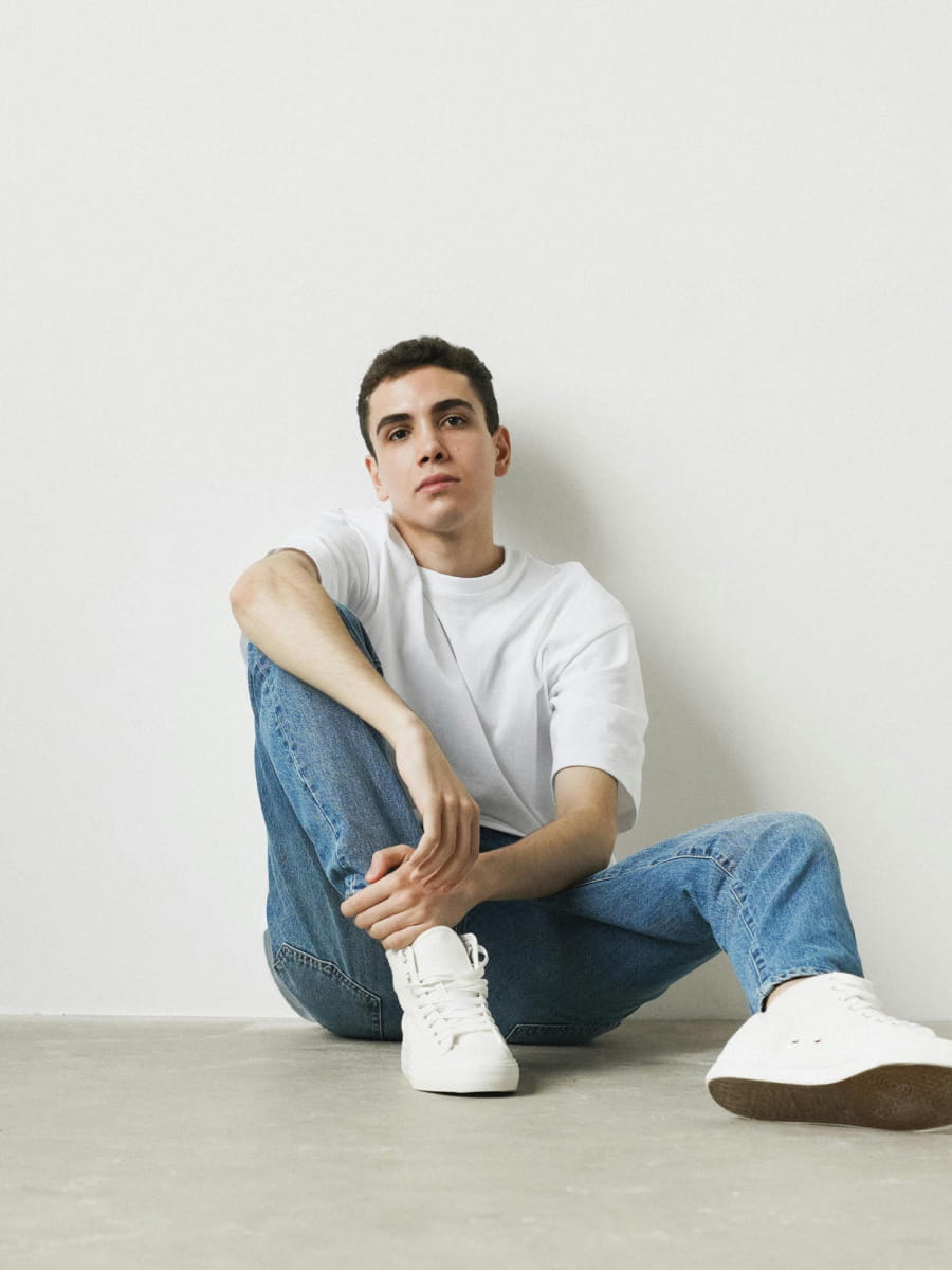 Contrast-trim crew neck. Embossed symbol on the chest.